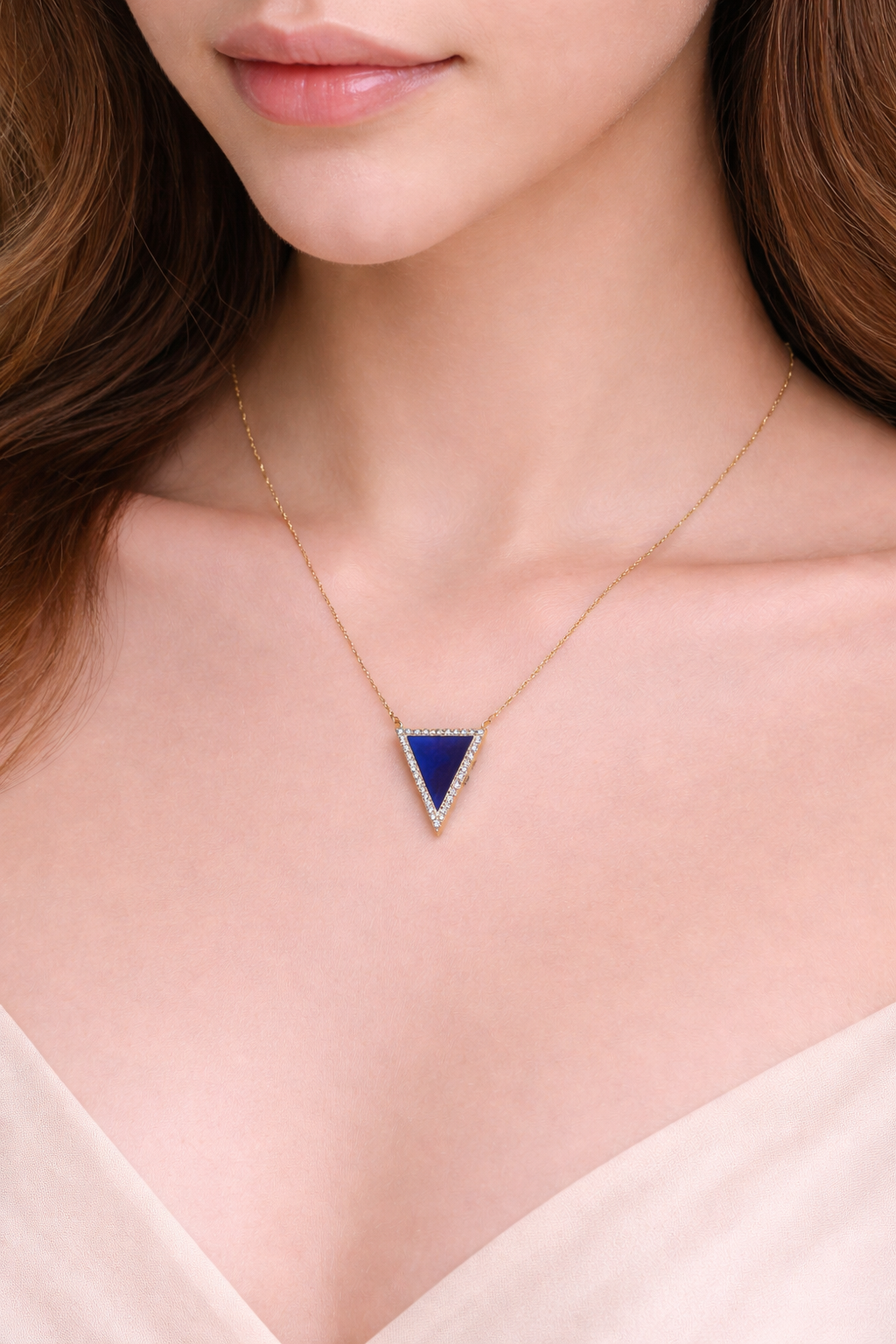 Sterling Silver Gold Vermeil CZ Geometric Triangle Necklace